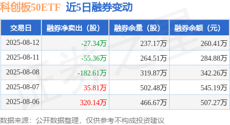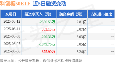 本站消息,8月12日,科创板50ETF(588080)融资买入8531.83万元,融资偿还1.11亿元,融资净卖出2556.55万元,融资余额7.81亿元。